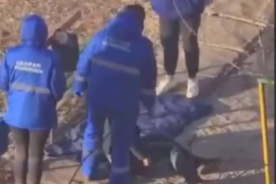 Приехавшие врачи - девушка и двое мужчин, некоторое время стояли над пациентом. Затем мужчины столкнули его со скамейки на асфальт, на предварительно подстеленный спецматериал. Падая, мужчина ударился головой об асфальт и тем самым пожал признаки жизни. После этого врачи стали пинать его ногами.