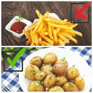 Бытует мнение, что популярные жареные формы картофеля связаны с увеличением веса. Но правильно приготовленный картофель может иметь противоположный эффект! Ряд исследований показал, что участники с неконтролируемым уровнем глюкозы достигли снижения резистентности к инсулину и потерю веса после восьми недель диеты с высоким содержанием картофеля. Картофель настолько питателен, что люди могут жить за счет него месяцами, не добавляя в свой рацион никаких других продуктов. Вареный или запеченный картофель практически не содержит жира. Клубни богаты крахмалом, но содержат меньше калорий, чем эквивалентная порция макарон из мягких сортов пшеницы или риса, поэтому насыщение организма энергией наступает быстрее. В отличие от вышеописанных блюд, картофель содержит полезные микроэлементы, такие как витамин С – 28% от дневной нормы, витамин В6 – 27% от дневной нормы, калий – 26% от дневной нормы, марганец – 19% от дневной нормы, магний, фосфор, ниацин, фолиевая кислота – по 12% от дневной нормы, поэтому чрезвычайно полезен для человека.