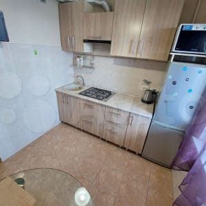 Есть все необходимое для комфортного проживания, кухонный гарнитур, холодильник, эл.чайник, газовая плита,cплит-система, двуспальная кровать+ диван-кровать. Стиральная машинка,телевизор.Так же в квартире есть большая уютная лоджия, для курящих гостей! ТВ,утюг,WI-FI,все кухонные и постельные принадлежности, полотенца. Во дворе дома кафе"Галелея "