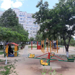 Кухня 12кв.м., комната 18кв.м. Окна выходят на пойму реки Ахтуба. Современная детская площадка.