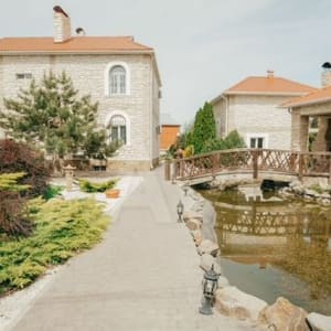 Во дворе декоративный пруд, камин-мангал,беседка (вместимость на 16 человек)