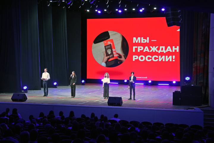 Накануне Дня Конституции состоялась церемония вручения паспортов 14-летним волжанам. Главный документ гражданина Российской Федерации получили ребята практически из всех школ Волжского, участвующие во всероссийском «Движении первых».