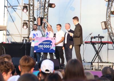 На главной сцене Центральной набережной наградили победителей соревновательных площадок Молодежного фестиваля #ТриЧетыре. Денежные сертификаты командам вручили председатель Волгоградской городской Думы Владлен Колесников, заместитель главы Волгограда Анна Кувычко и председатель комитета образования, науки и молодежной политики Волгоградской области Лариса Савина.