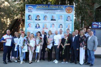 На доску Почета Краснооктябрьского района занесены также имена Сергея Цеплакова - начальника отдела по вопросам миграции отдела полиции, Дмитрия Шкитина – главного специалиста-эксперта военного комиссариата Краснооктябрьского и Тракторозаводского районов, Максима Синицына – рабочего зелёного хозяйства МБУ «ЖКХ Краснооктябрьского района Волгограда».