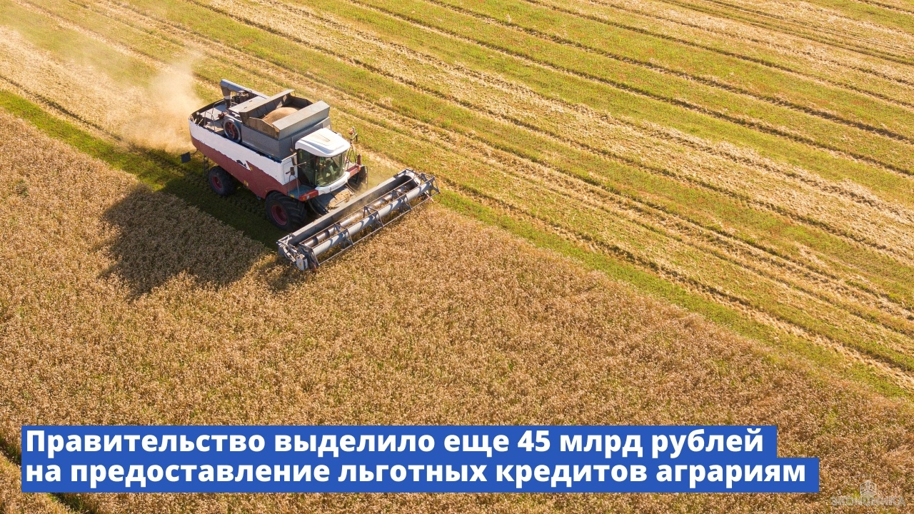На поддержку программы льготного кредитования сельхозпроизводителей будет дополнительно направлено 45 млрд рублей, что позволит просубсидировать более 40 тыс.