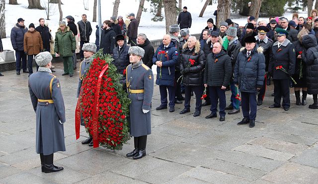 Сегодня, в день 81-й годовщины победы в Сталинградской битве, на главной высоте России - Мамаевом кургане полномочный представитель Президента Российской Федерации в Южном федеральном округе Владимир Устинов, министр сельского хозяйства РФ Дмитрий Патрушев, губернатор Волгоградской области Андрей Бочаров, председатель Волгоградской областной Думы Александр Блошкин, сенаторы РФ, депутаты Государственной Думы и регионального парламента, делегация Курской областной Думы во главе с председателем заксобрания Юрием Амеревым, представители ветеранского сообщества, силовых структур, духовенства, юнармейцы почтили память погибших защитников Родины.