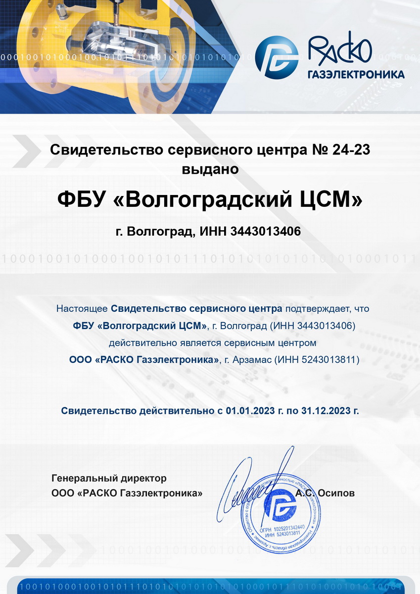 Волгоградский ЦСМ Росстандарта – официальный сервисный центр ООО «РАСКО Газэлектроника»