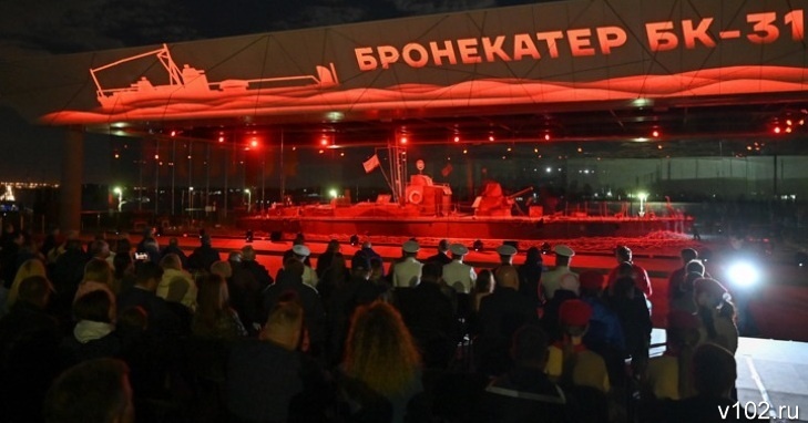 Мультимедийный показ «Живые картины героического пути Бронекатера БК – 31» состоялся сегодня, 3 сентября, в центре Волгограда. Как сообщает V102.RU, холстом для захватывающего 30-минутного представления стал фасад мемориального выставочного комплекса БК-31 на Центральной набережной.