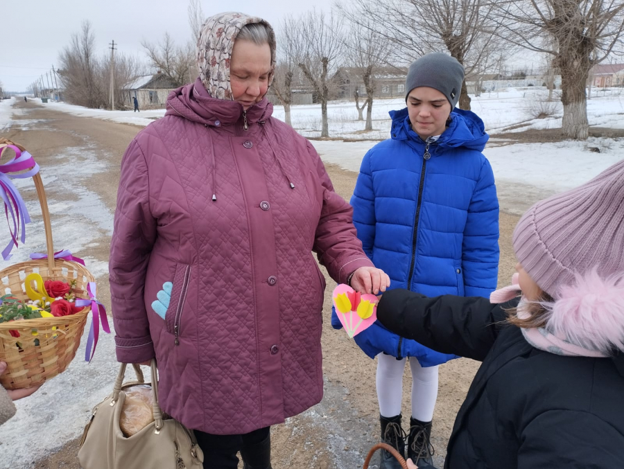 В преддверии 8 марта они вышли на улицы села, чтобы вручить приятные сюрпризы односельчанкам, чем заслужили их добрые улыбки и радостные взгляды.