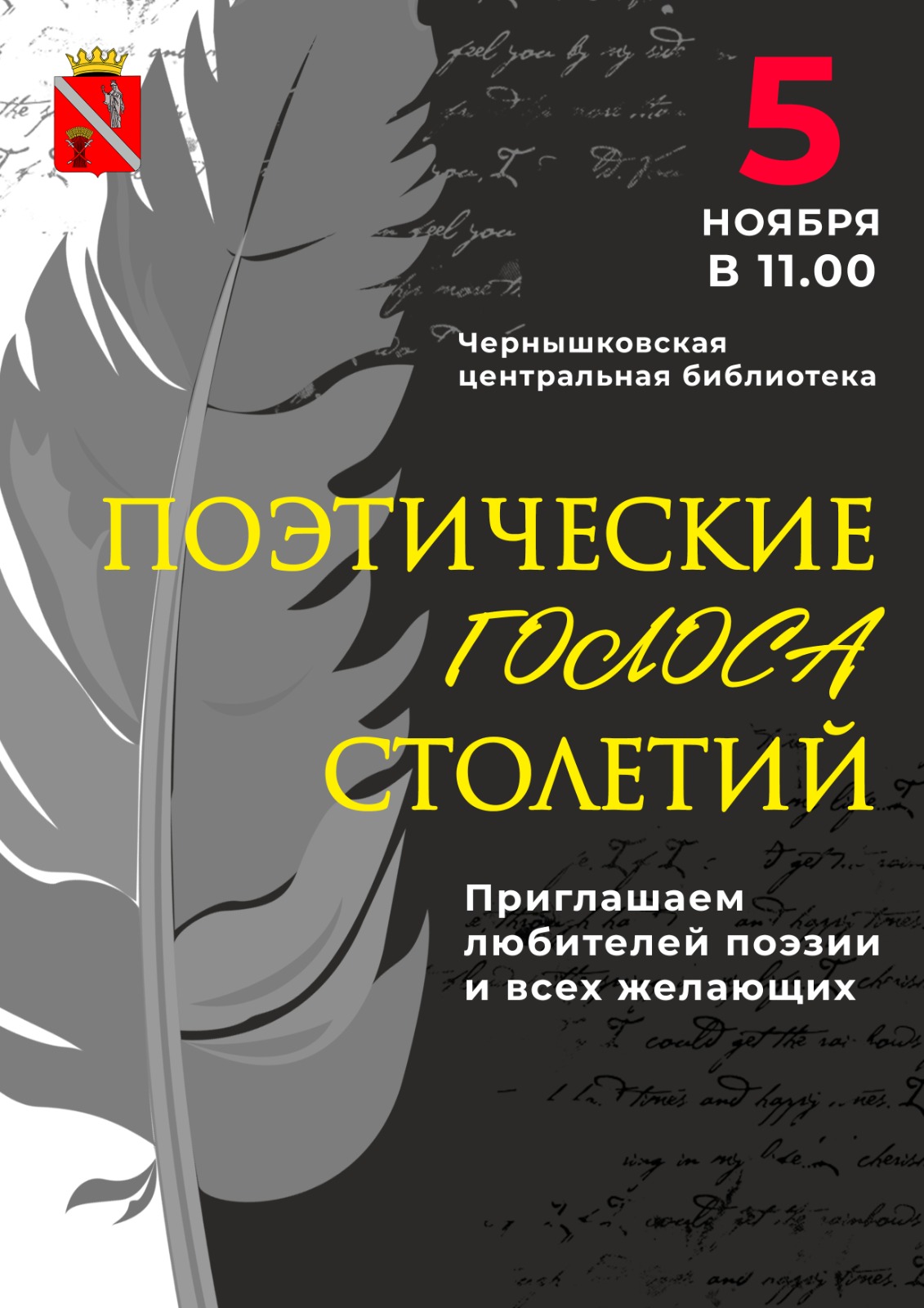 5 ноября 2023 года в 11:00 часов в Чернышковской центральной библиотеке состоится заседание Клуба выходного дня «Поэтические голоса столетий».