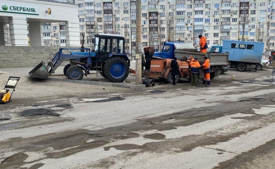 Сегодня дорожники работают на ул. Братьев Сорокиных в районе Сбербанка.