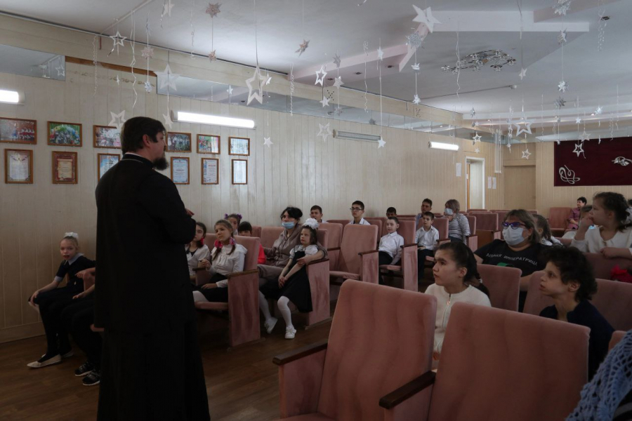 На простых и ярких примерах батюшка объяснил детям православное понимание извечных вопросов человеческого бытия: что есть добро и зло, что такое семья, и какую роль она играет в жизни каждого человека.