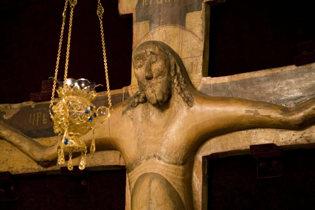 Однако столь широкое почитание Годеновского креста нашим народом объясняется, безусловно, не только осмыслением известных исторических событий. Крест Христов сам по себе является величайшей святыней и сокровищем Церкви, которая прославляет его как символ победы над злом и грехом, как орудие нашего искупления и знамение любви Божией. Хранитель всея вселенныя, царей держава, верных утверждение, ангелов слава, демонов язва — такими словами мы исповедуем животворящую силу Креста Христова.
