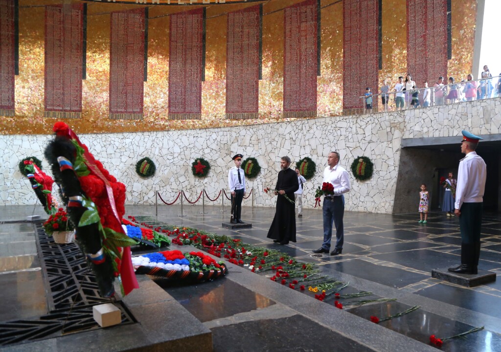 Каждый, кто приезжает в наш город стремится посетить главную высоту России. Сегодня после Божественной литургии Михаил Михайлович побывал на Мамаевом кургане. Сотрудник Отдела по взаимоотношениям Церкви с обществом и СМИ Волгоградской епархии Сергей Иванов провел экскурсию по мемориальному комплексу.