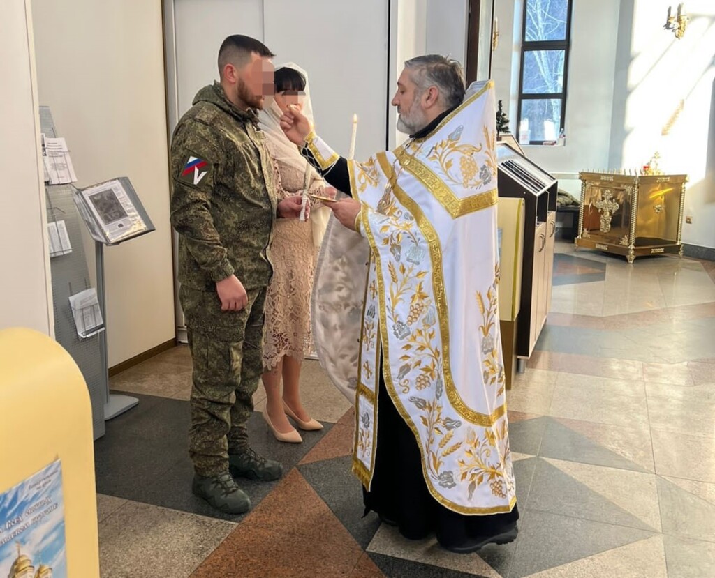 Венчающиеся уже состоят в законном браке. Решение обвенчаться было принято ими после того, как супруг был командирован в зону боевых действий.