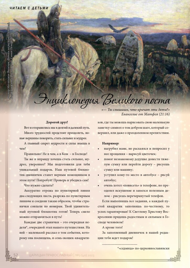 В новом выпуске журнала «Царицын Православный» для юных читателей представлен уникальный дневник «Заметки странника – мой путевой блокнотик».