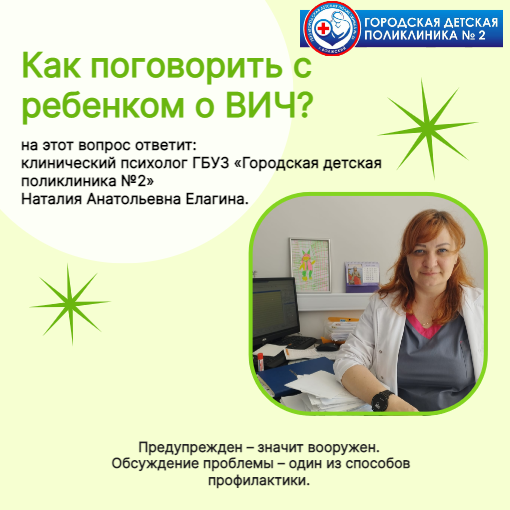 Предупрежден – значит вооружен. Консультацию «Беседа с ребенком о ВИЧ» для родителей проводит клинический психолог ГБУЗ «Городская детская поликлиника №2» Наталия Анатольевна Елагина.