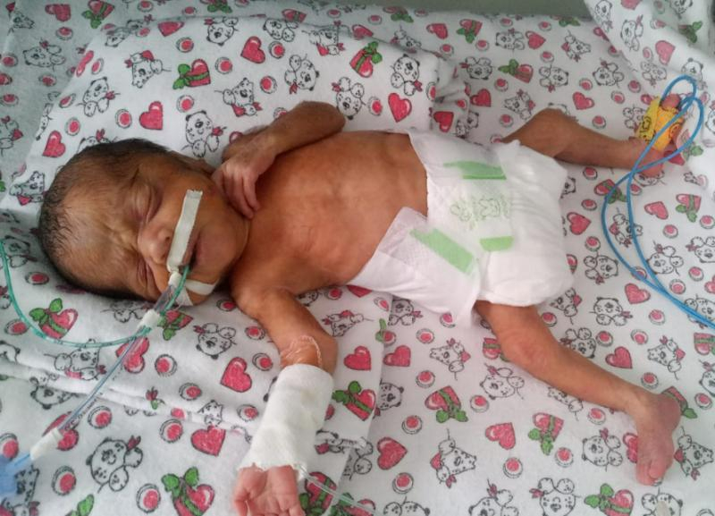 Мать родила Самира и оставила в медучреждении. Мальчик родился недоношенным, но благодаря врачам за месяц своей маленькой жизни уже набрал 400 грамм. Сегодня он весит 1200 грамм.